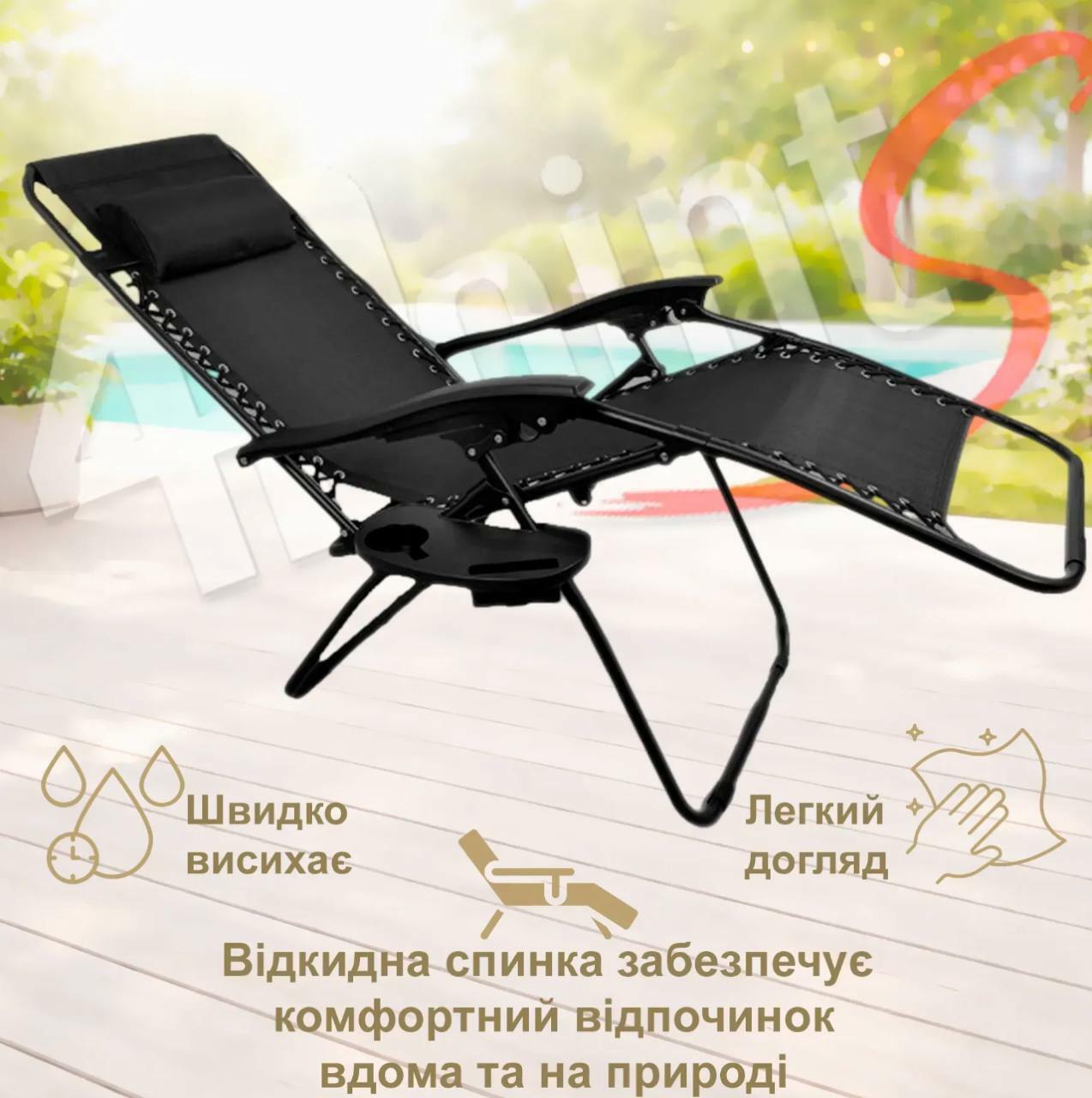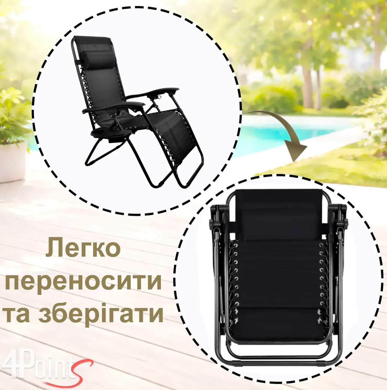 🔸 Висота спинки шезлонга у верхньому положенні: 114 см