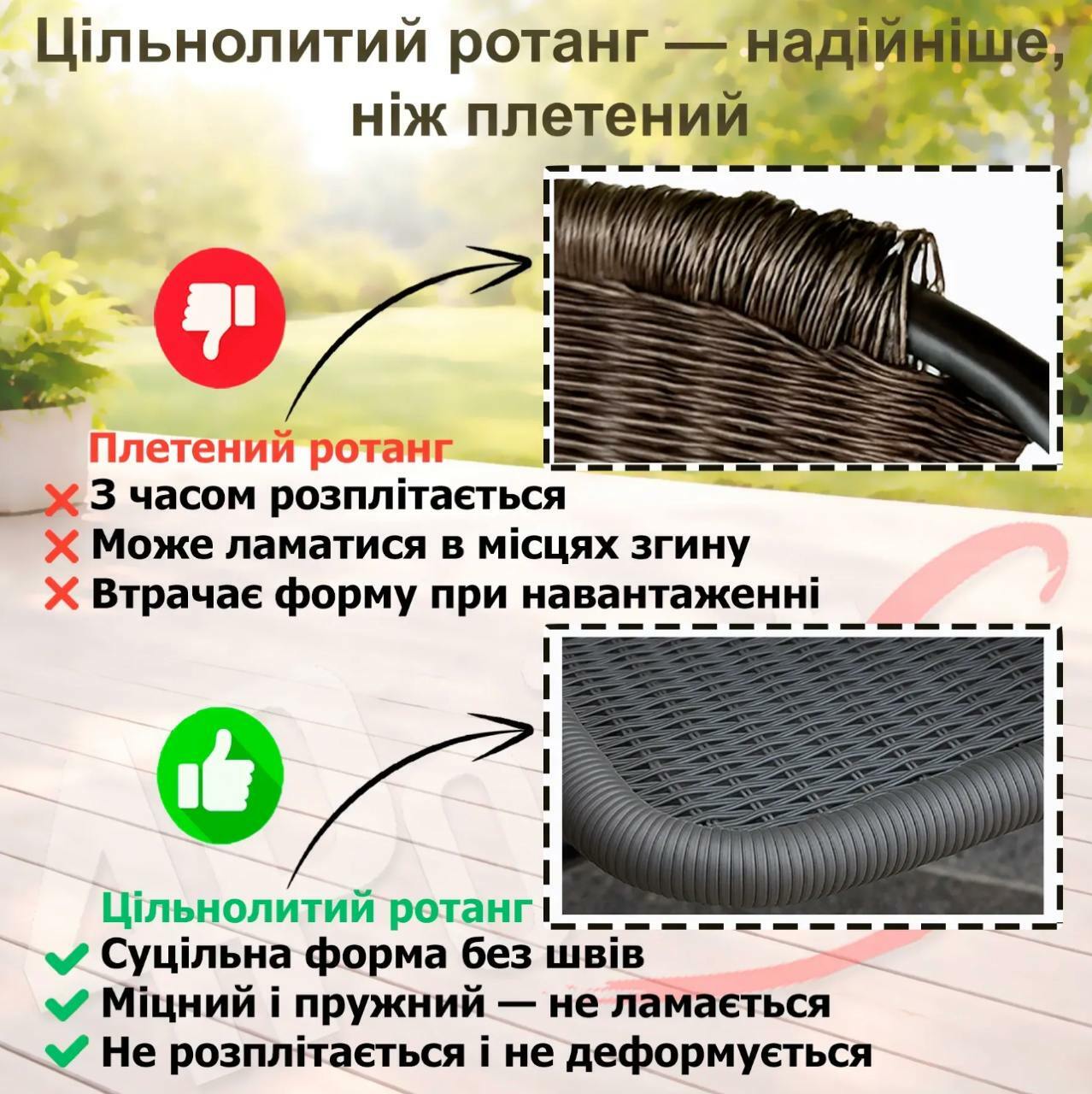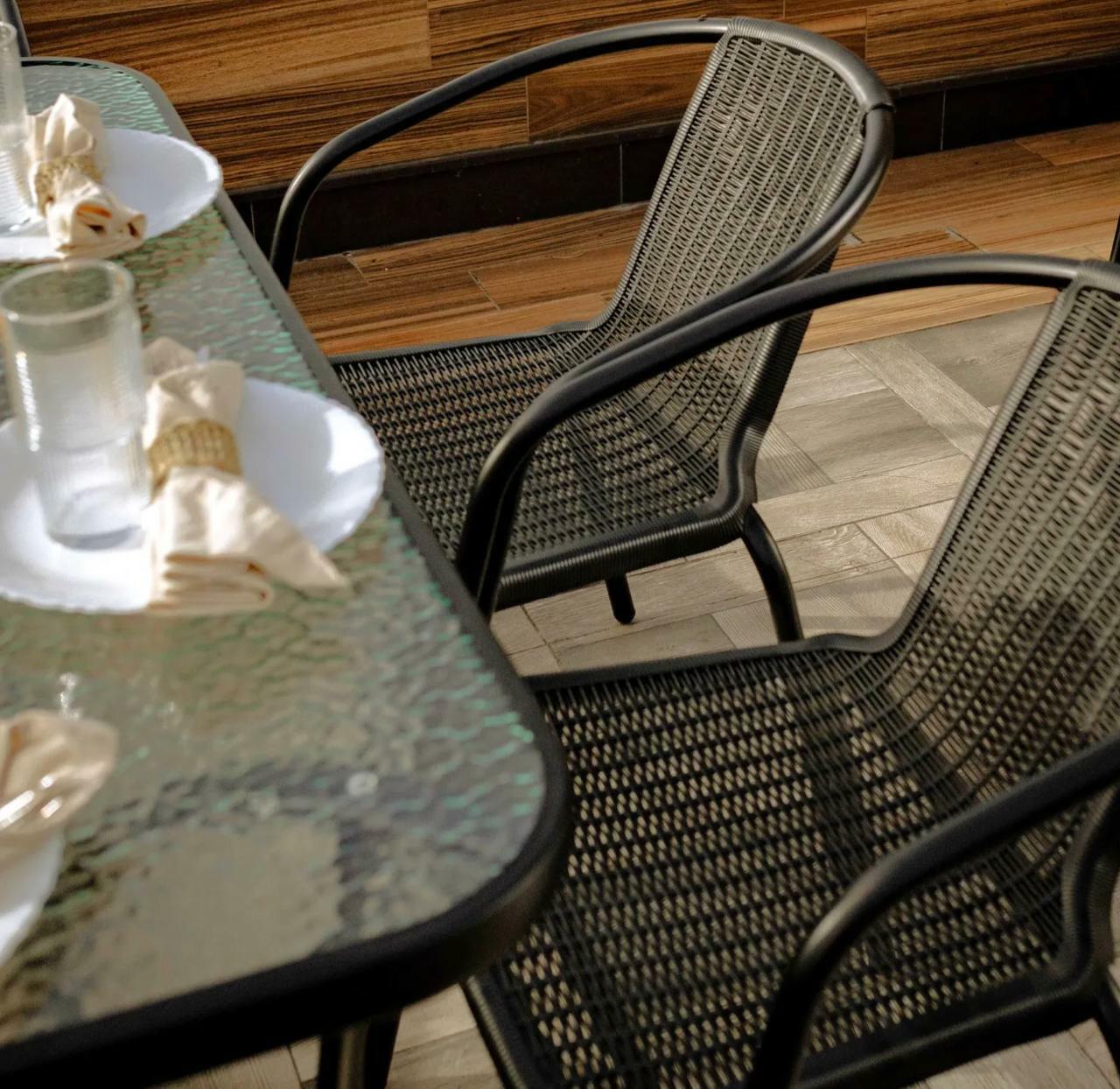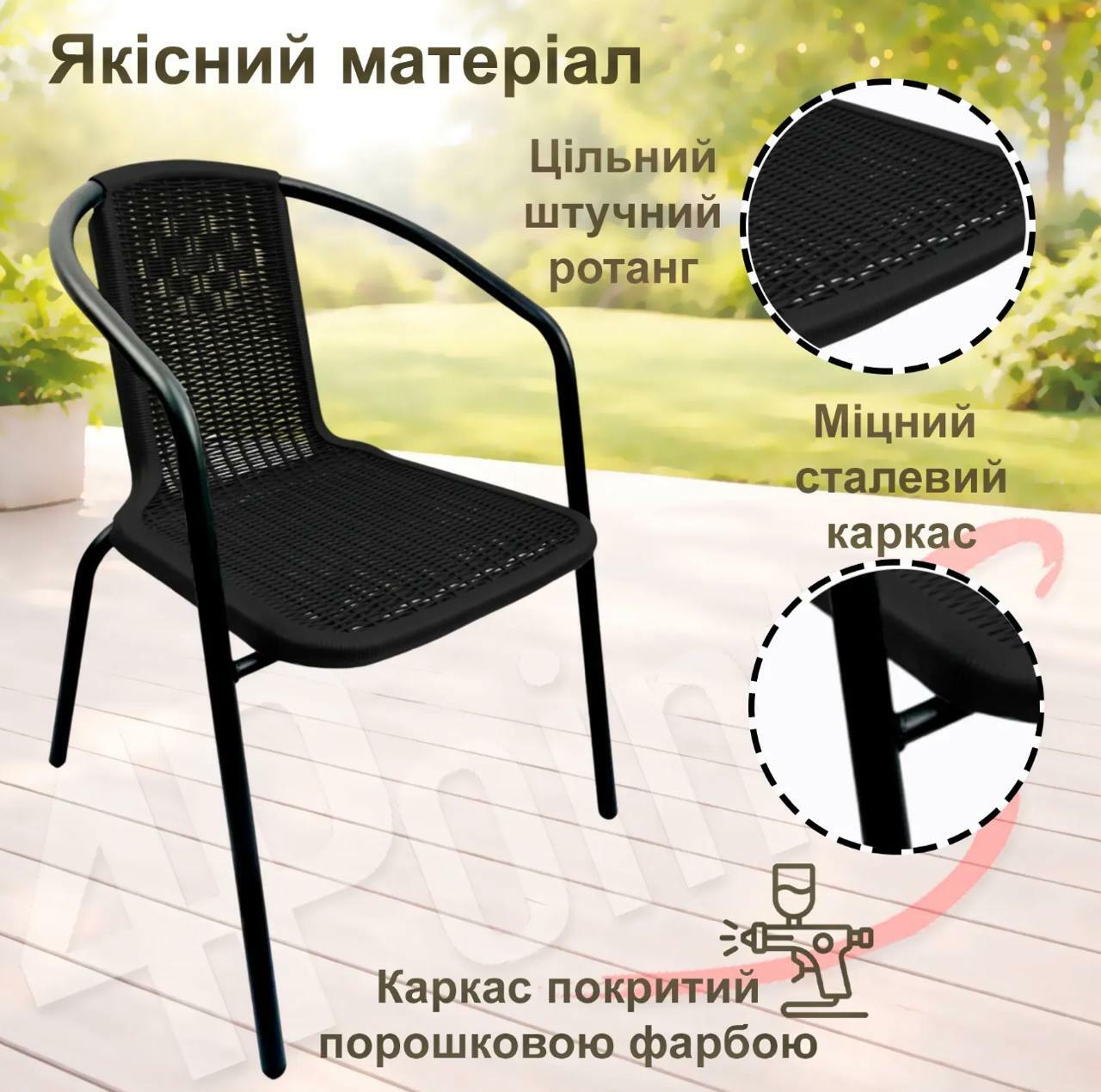 🔸Матеріал стільців: Щільнолитий штучний ротанг