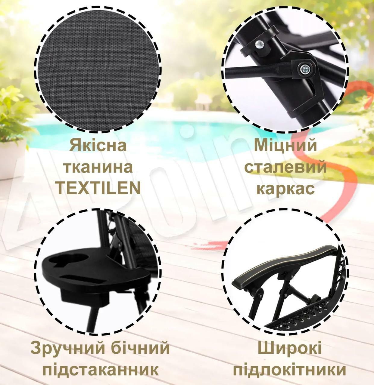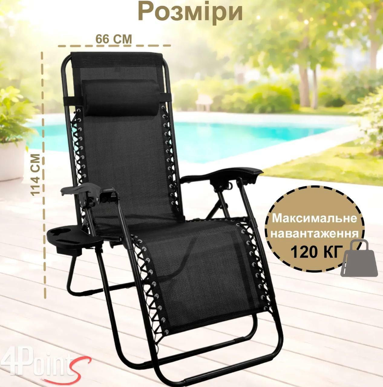 🔸 Висота спинки шезлонга у верхньому положенні: 114 см